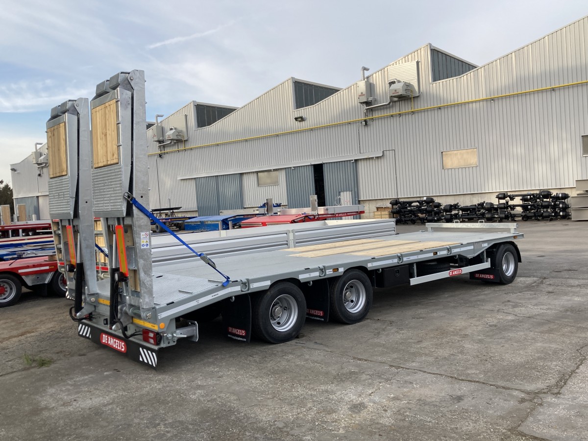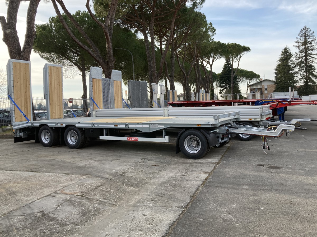 RIMORCHIO A PIANO DRITTO ULTRA-RIBASSATO. LUNGHEZZA TOTALE: 10,50 m. ACCESSORI: - 3° ASSALE AUTOSTERZANTE - RAMPE DI CARICO A SCELTA DI DIVERSE TIPOLOGIE - (SGS) SISTEMA A GUIDE SCORREVOLI PER RAMPE: Con il montaggio SGS le rampe vengono installate su carter di tipo rimovibile che scorrono dentro a delle guide costruite nella testata posteriore. A differenza del montaggio tradizionale, questo sistema consente i seguenti vantaggi: o Permette di restringere ed allargare in maniera molto più efficiente rispetto al sistema tradizionale di montaggio delle rampe o Rimozione facile e veloce delle rampe in caso di necessità o Possibilità di sostituire nel tempo le rampe esistenti con qualsiasi modello presente a catalogo senza alcun intervento di carpenteria/verniciatura/ricollaudo - 2 CASSETTE PORTA-ATTREZZI IN INOX - ANELLI CERTIFICATI INCASSATI NEI LATERALI