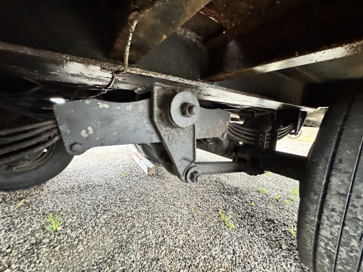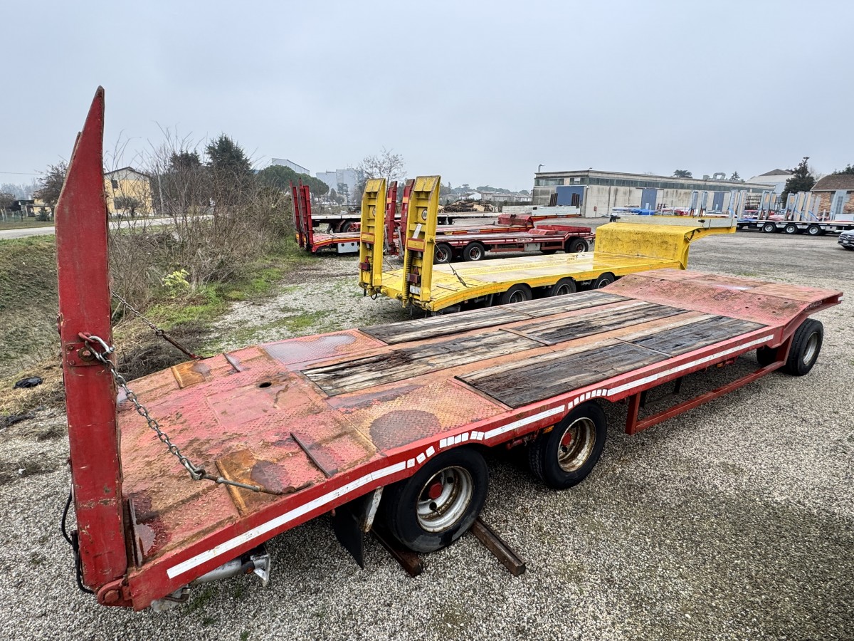 LUNGHEZZA TOTALE: M. 10,54 Lunghezza piano caricabile: 8,5 m Larghezza: m 2,55 MISURA PNEUMATICI: 245/70R17.5 in buone condizioni SOSPENSIONI A BALESTRE PARABOLICHE Piano di carico lamiera bugnata e legno (parzialmente da sostituire) RAMPE IDRAULICHE M. 2,00 x 0,70 CON CENTRALINA ELETTROIDRAULICA. Cassetta porta attrezzi ***Abbinabile esclusivamente ad autocarri classificati mezzo d'opera a 3 assi aventi lunghezza da paraurti anteriore a centro campana di traino di m 8,20 ***